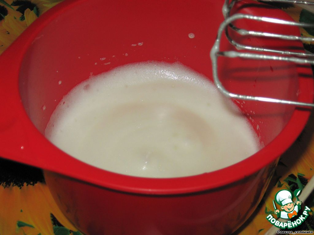 Пока варится сироп, взбить миксером белки в стойкую пену