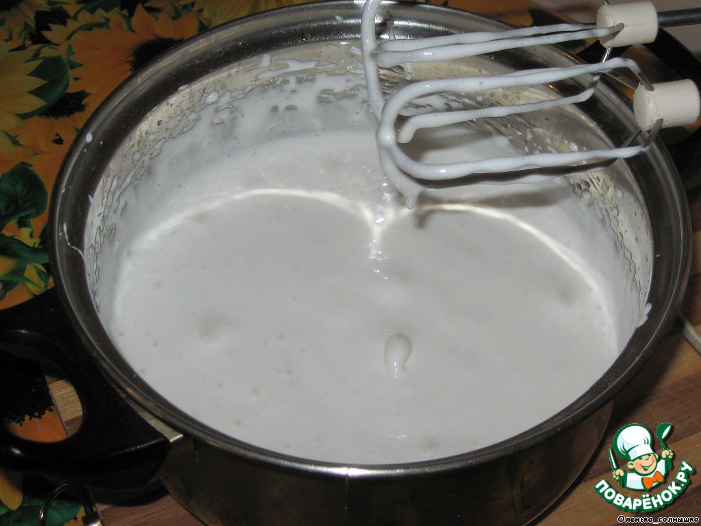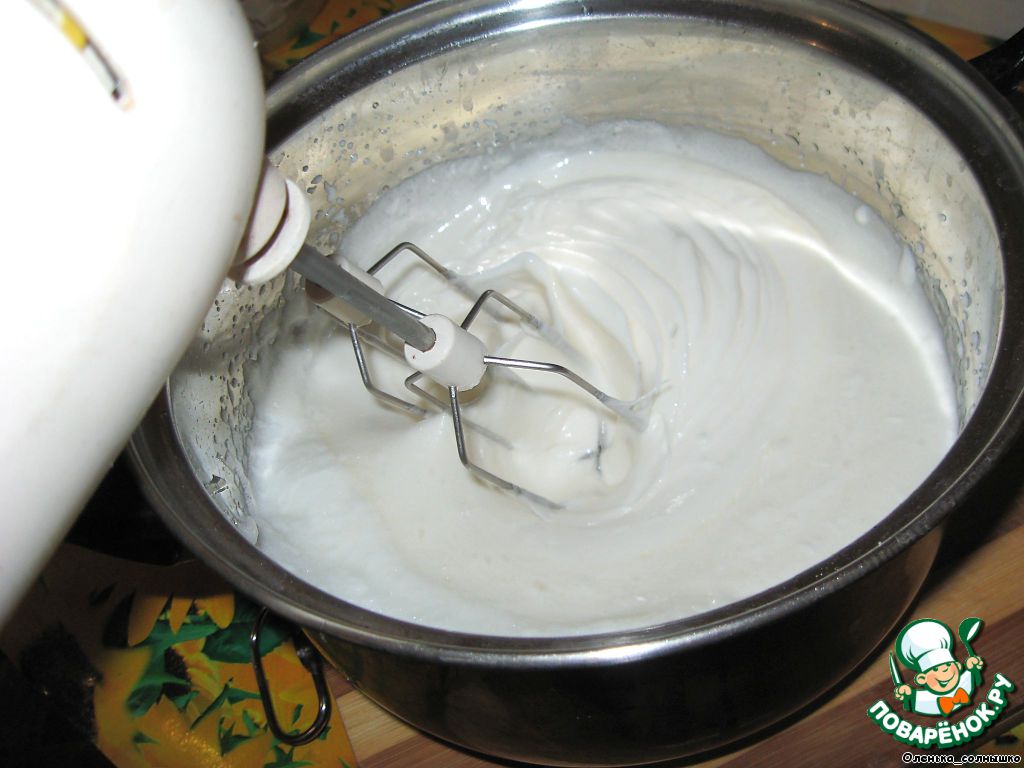 Снять сироп с огня, сразу же начать взбивать миксером, понемногу добавляя белки