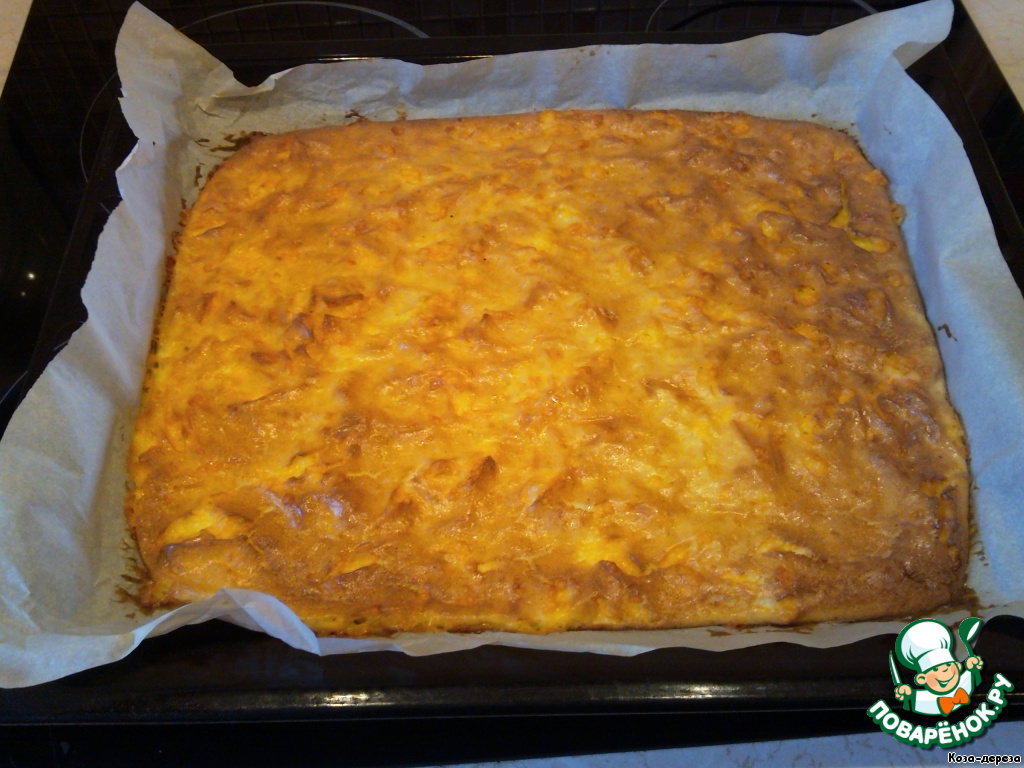 Застелить пергаментом противень, распределить по нему массу, запекать в разогретой до 180С духовке 20 минут до красивого золотистого цвета. -