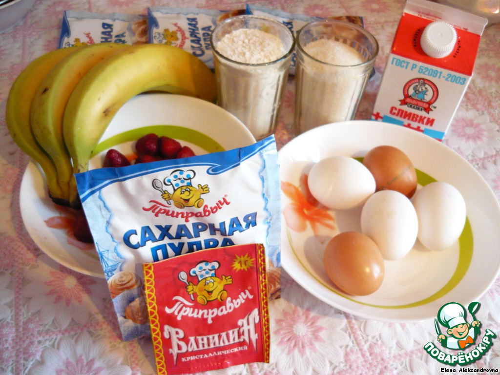 Ингредиенты для «Бисквитный рулет "Банан+клубника"»: