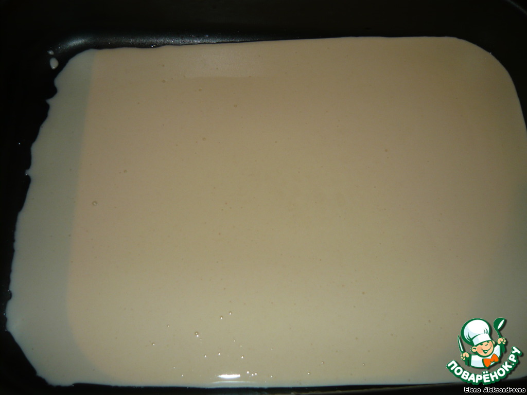 Тесто выливаем на противень (лучше застелить его бумагой для выпечки). И ставим в духовку. 180 градусов - 20 минут. Во время выпекания духовку просьба не открывать!