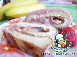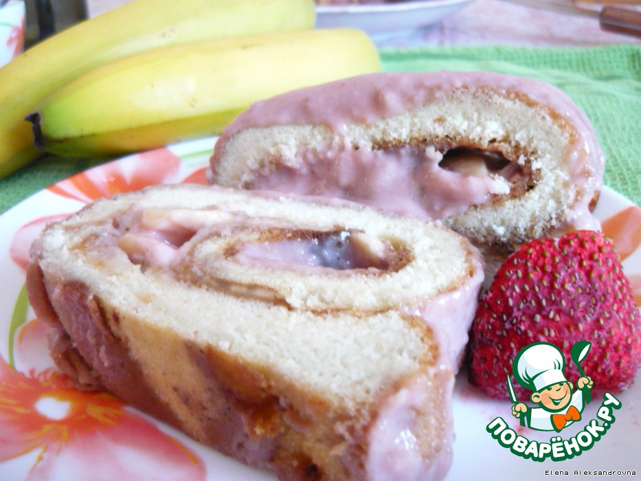 Рецепт «Бисквитный рулет "Банан+клубника"»: