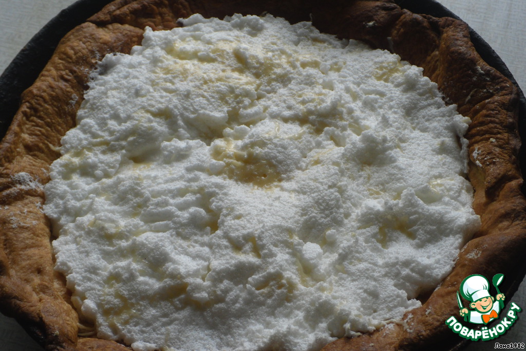 Белки взбить со щепоткой соли в мягкую пену. Осторожно подмешать тертый сыр. Выложить пенку на пирог и поставить в духовку до зарумянивания верха. Духовку выключить, дверцу приоткрыть и оставить так минут на 15.