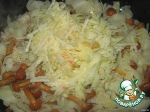 Потушить овощи вместе с грибами в течение 10 минут. -