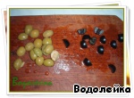 С зеленых и черных маслин сливаем жидкость и режем их так: