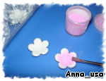 Когда цветочки высохнут, покрыть лепестки краской, начиная от середины, так, чтобы края остались белыми.