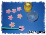 Серединку каждого цветочка смазать водой или мёдом (у меня кукурузный сироп) и насыпать немного жёлтой кондитерской посыпки. Дать подсохнуть.
