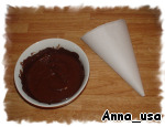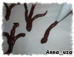 Заполнить кулёк и выдавливать шоколад в виде веточек на пергаментную бумагу.