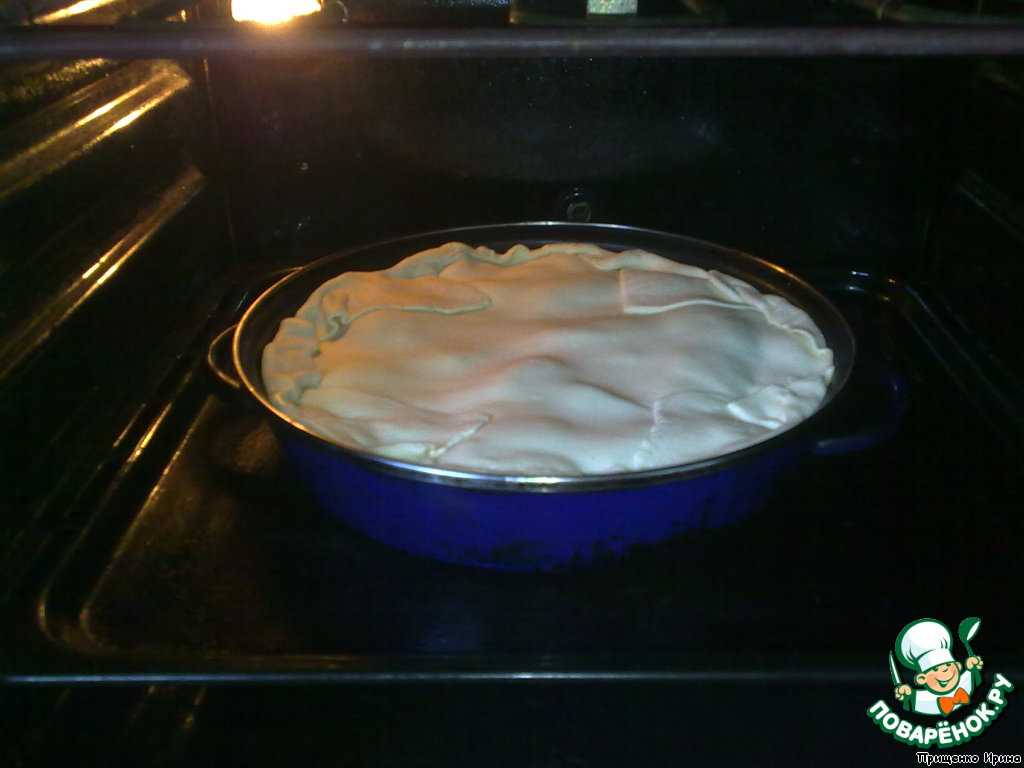 • Разогреваем духовку до 200 градусов и помещаем наш полуфабрикат на 15-20 минут (все зависит от вашей духовки), тесто должно быть золотистого цвета.
