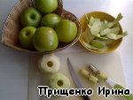 • 2 яблока режем напополам, остальные на дольки (пополам, и каждую половинку еще на 4 части).