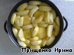 • Обжаренные яблоки выкладываем в форму для запекания (4 крупных половины в середину, а остальные дольки аккуратно вокруг).