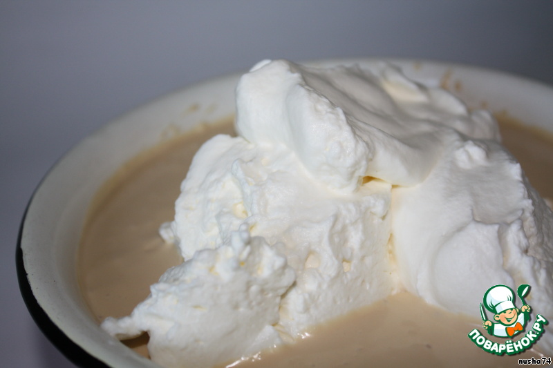• Добавить взбитые сливки и все перемешать ложкой.
