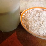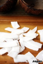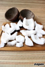 Остались сущие пустяки - достать мякоть и очистить ее от внешней коричневой корочки. Можно и не очищать, но тогда молоко получается грязно-белого цвета. Кстати, сама корочка съедобна и если не требуется идеальная белизна молока или стружки, то можно ее и не счищать.