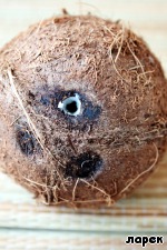 Итак, прежде всего - научитесь выбирать правильные орехи. Выбирайте самый тяжелый кокос, потрясите его у уха - проверьте в нем наличие кокосовой воды. Три глазка у основания кокоса должны быть целыми, неповрежденными, без плесени.