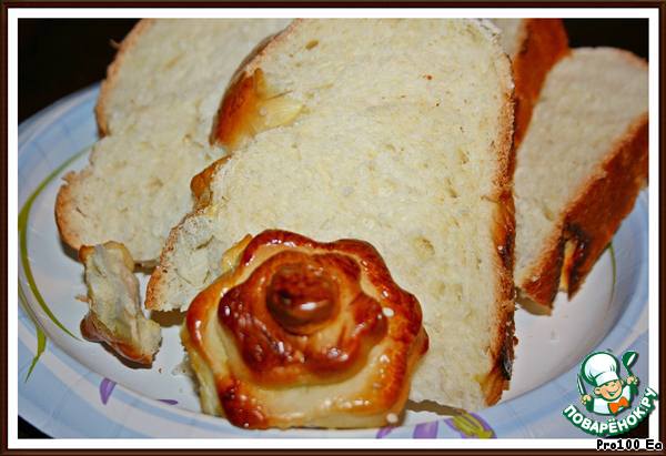 Сходил муж в магазин за продуктами и принес мне новую книжку с рецептами, вот такой рецепт хлеба нашла в ней. Очень ароматный и вкусный получился, и очень приятное тесто для рук. Подавать рекомендуется (в книге) с майонезом, зеленью, помидорами, луком, маслинами, сыром и горчицей, все это в виде бутерброда!!! Вкусный был хлеб, правда мои мальчики съели его до того, как я успела сделать его, как в книге!!! Очень вкусный!!!