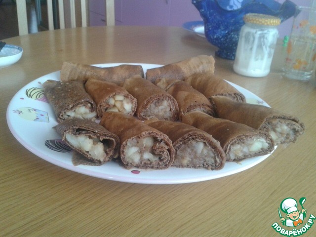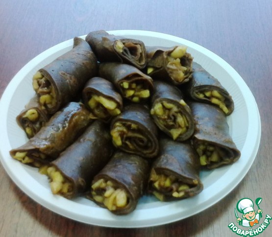 Рецепт «Шоколадные блинчики с карамельными яблоками»: