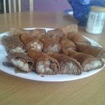 Кладем начинку на блины и заворачиваем. Приятного чаепития!