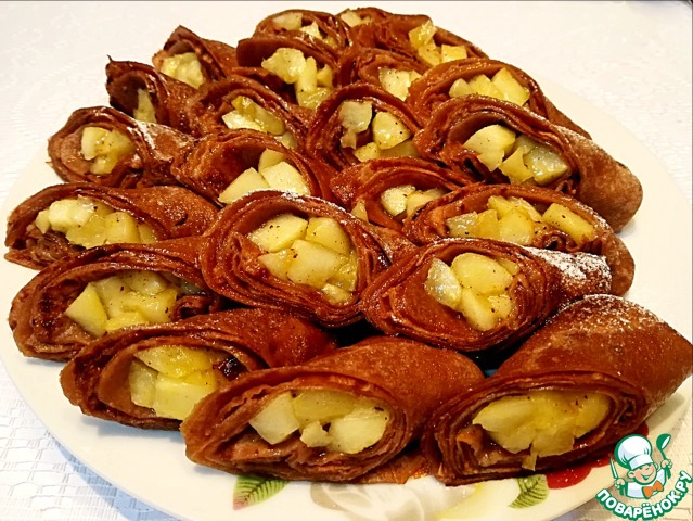 Шоколадные блинчики с карамельными яблоками