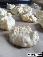 Выкладывать тесто ложкой на противень, застеленный бумагой для выпечки. Учтите, что печенья "растекаются" слегка, так что должно быть расстояние между ними. Выпекать 10-15 минут при температуре 170-180 градусов.