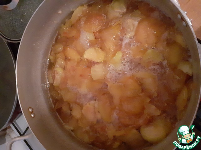 Вообщем, в вышеописанном рецепте, этап с раствором соды поставлен не в то место по хронологии, надо его ставить в этап, следующий после очистки и нарезки на дольки.