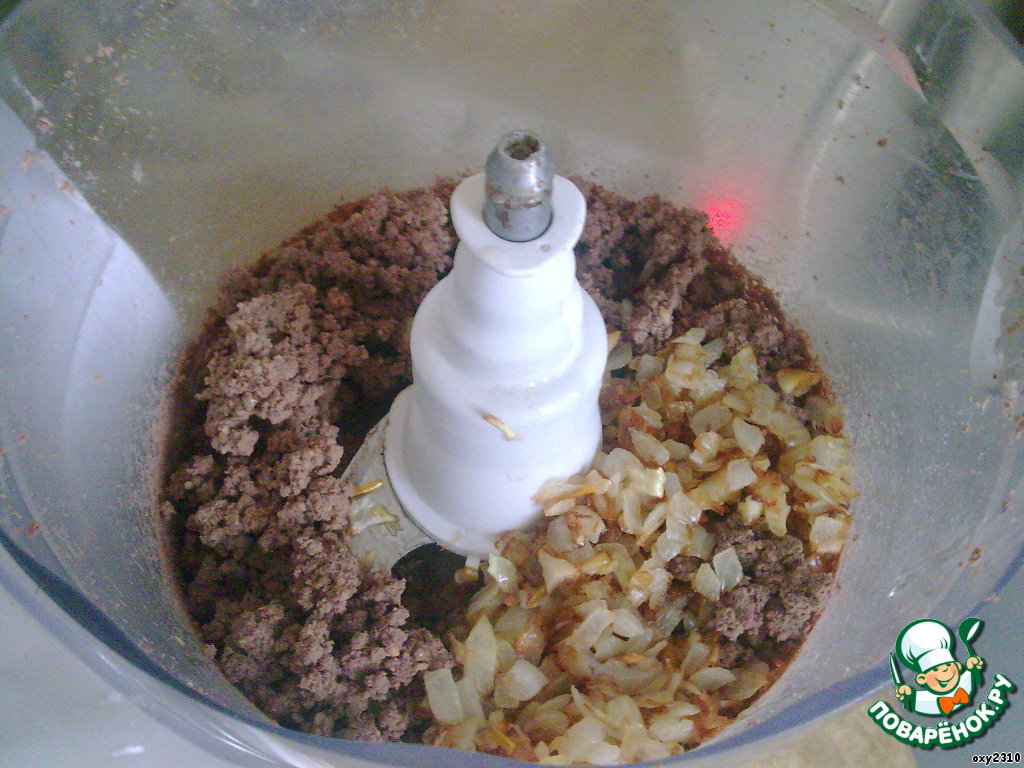 2 луковицы нарезать и обжарить в 3 ст.л. растительного масла до золотистого цвета. Добавить к печени с орехами. Взбить.