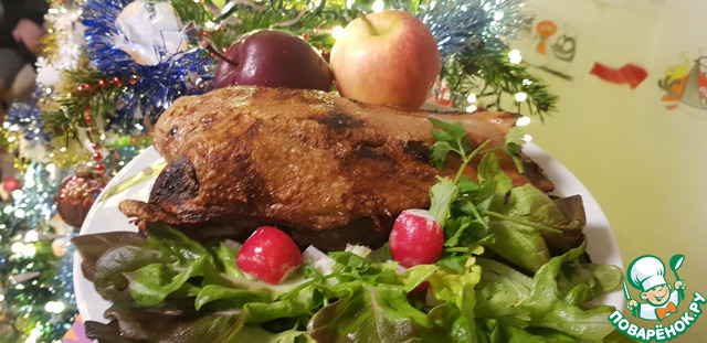 На фольгу под гуся я положила капустные листья - гусь не пристал и не пригорел. -