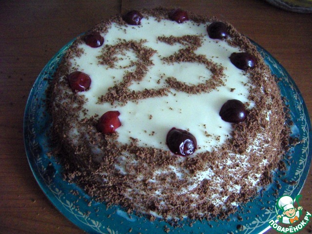 Рецепт этого блюда был размещен на сайте в 2008 году пользователем Irisha1982 под названием "Бисквит вишневый" и иллюстрирован мной в рамках акции "Раскраски". Рецепт бисквита был очень простой, поэтому добавила к нему крем и преобразила в такой вот десерт.