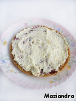 Автор предлагал вылить тесто в форму, посыпать крахмалом, выложить вишню, присыпать слой ягод крахмалом и вылить оставшееся тесто. Я готовила бисквит как основу под торт, поэтому немного отступила от совета автора и вишню присыпала крахмалом отдельно от теста.