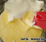 Разделить белки и желтки. Желтки взбить с 2 ст. л. сахара до побеления.