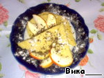 расстроилась, сделала такое же тесто с яблоком и такое же тесто с какао, вылила в формочку одно на другое и в духовке испекла. Вот так вкусно