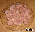 • Куриное филе (можно замороженное) нарезать кусочками по 1-2 см.
