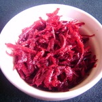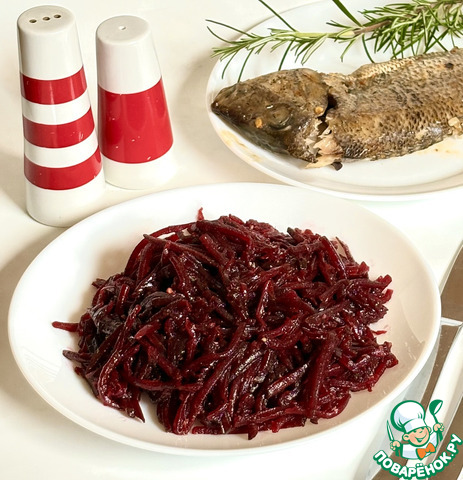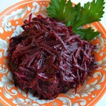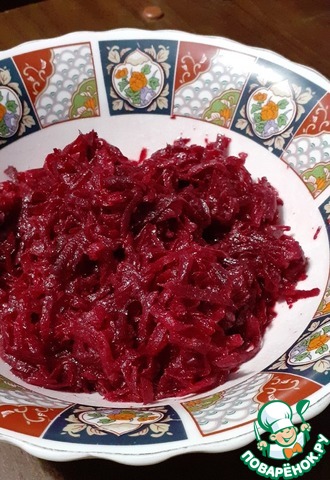 [+5]Готовила из 3 свёкол (около 600 г), не очищая их (только хорошо промыла их жёсткой щеткой). Заправила 4 ст.л. сока лимона и молотым чёрным перцем и поставила в холодильник на три часа. Потом добавила 4 ст.л. оливкового масла extra virgin; соль не добавляла.