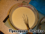 • Соединить обе смеси и тщательно перемешать. Тесто получается как густая сметана.