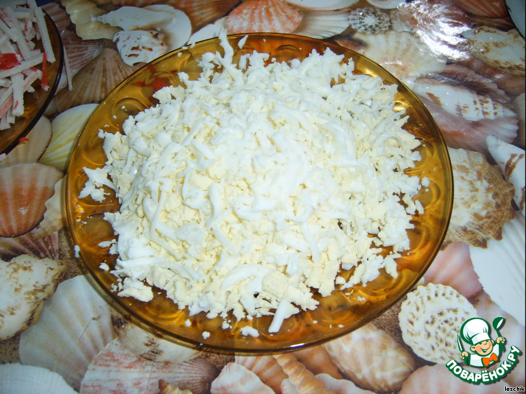 Яйца сварить, нарезать соломкой. Я просто натираю на тёрке.