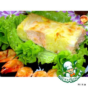 Рецепт этого блюда был размещeн на сайте в 2008 году пользователем Маринка под названием "Рыбка в картофельном пюре" и иллюстрирован мной в рамках акции «Раскраски». О существование этого рецепта я не предполагала. Было интересно, что же получится в итоге. Рецепт в целом не меняла... Хочу сказать, что я не разочаровалась в полученном результате.
