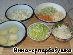 Подготовить овощи: все помыть, почистить и мелко нарезать.