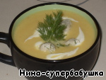 Овощи взбить в блендере. Можно оставить так, а можно добавить полстакана сливок. Прогреть. При подаче налить суп в тарелки или пиалы, добавить клецки и украсить сметаной и зеленью.