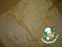 Затем добавить взбитую массу, взбитые белки и тщательно перемешать. |