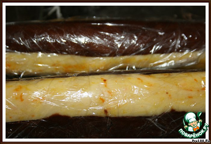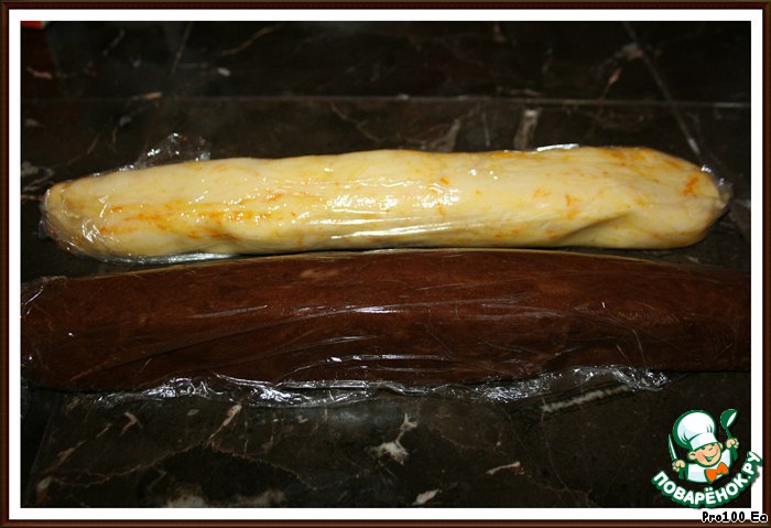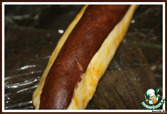 Придайте тесту форму колбаски и заверните в целлофан, поставьте в холодильник на 1 час.