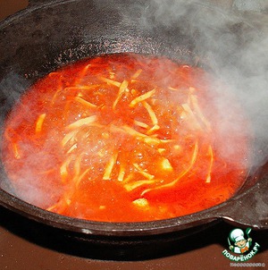 Добавляем туда же томатную пасту, и вместе с ней продолжаем обжаривать еще 10 минут.