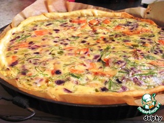 Вкуснейший киш! Все ингредиенты очень здорово сочетаются в нем. Начинка очень нежная. Замечательная и простая в приготовлении закуска. А еще, этот пирог очень яркий и красивый.
