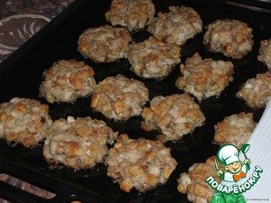 Из полученной массы столовой ложкой на смазанный маслом противень выкладываются лепешки. -