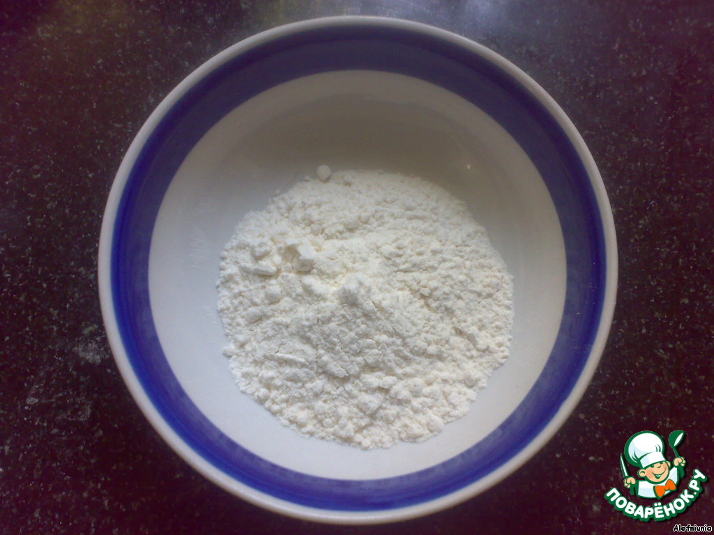 Муку насыпать в емкость, в которую удобно было бы выкладывать сушки для обваливания.