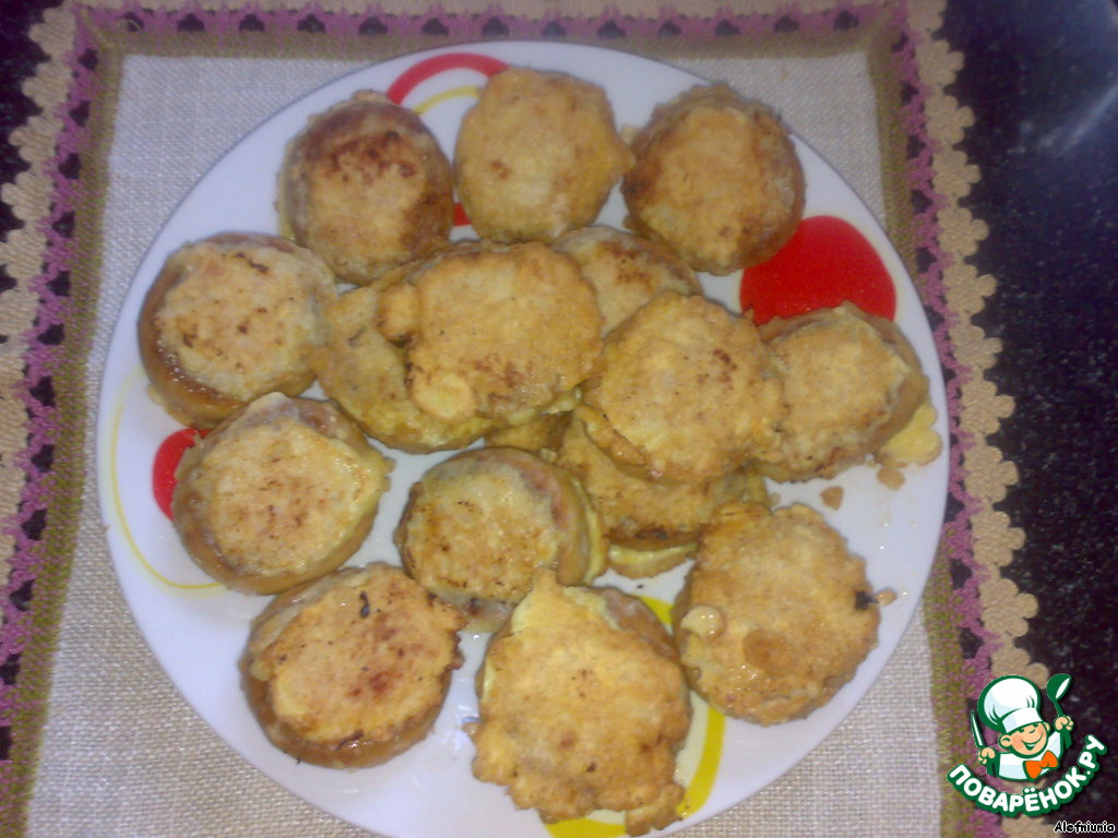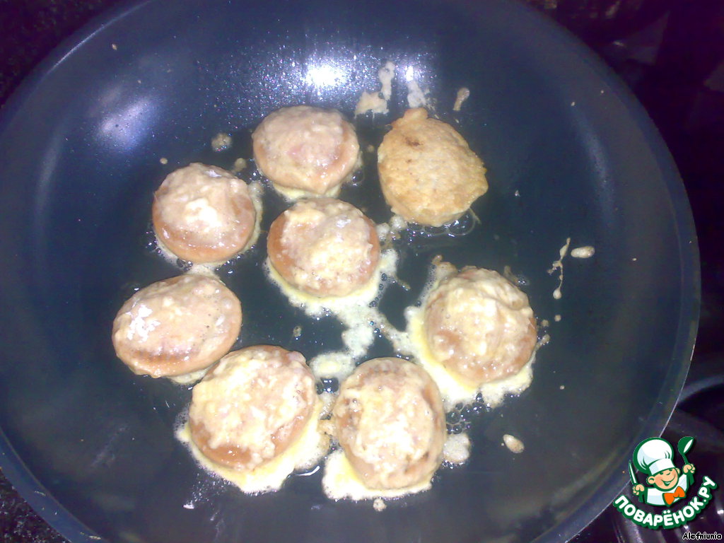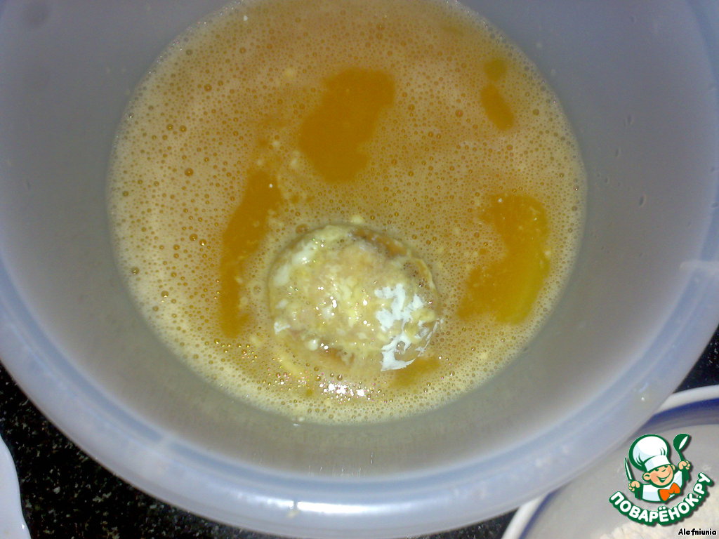 Обмакиваем сначала сушки с фаршем в муку, а затем в яйцо.