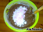 Хорошо перемешать и всыпать муку с разрыхлителем и какао.