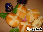 Описание: Традиционное пасхальное угощение в Великобритании - горячие булочки, украшенные крестом. Англичане верят, что эти булочки, испеченные именно на Страстную Пятницу, обладают целительной силой.
