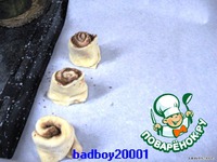 Свернуть рулетом, и разделить на части. Нарезать сначала пополам, потом каждую половинку пополам, а там смотреть на сколько частей каждый кусочек, толщина дожна быть 3-4 см. |