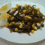 Морскую капусту при необходимости промыть от лишнего уксуса и, возможно, песка (такое, к сожалению, бывает).