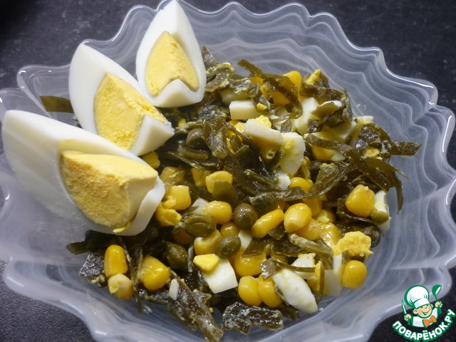 Салат из серии "Полезно, быстро". Но, конечно, рассчитан на любителей морской капусты.