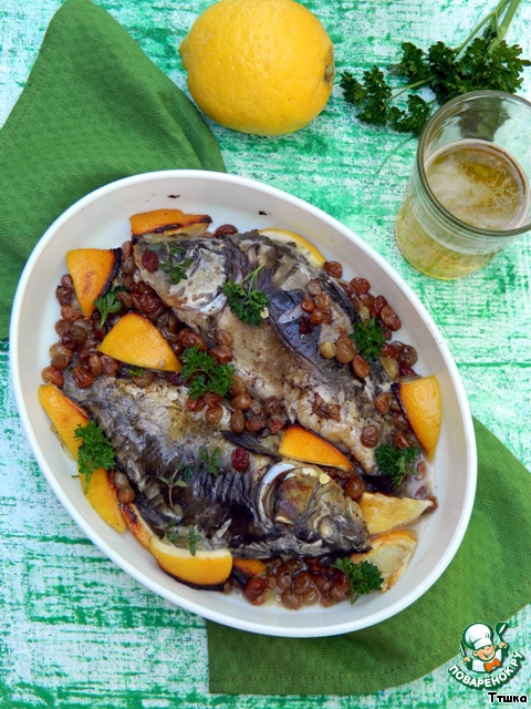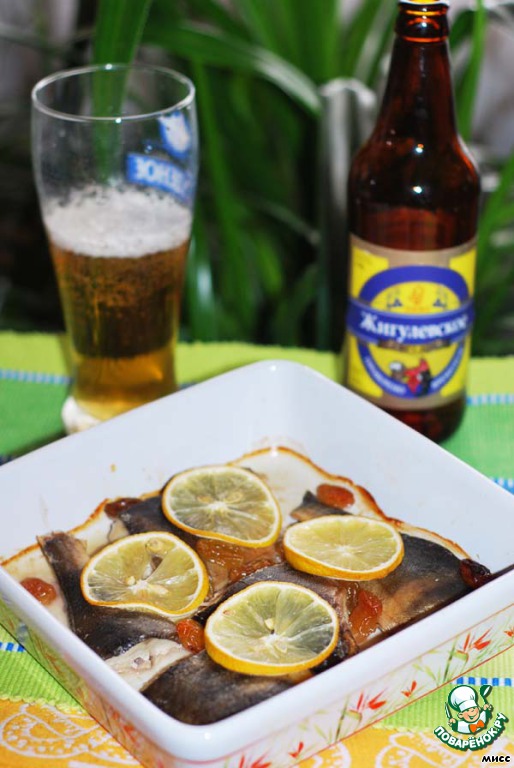Рецепт «Рыба в пиве с лимоном и изюмом»: